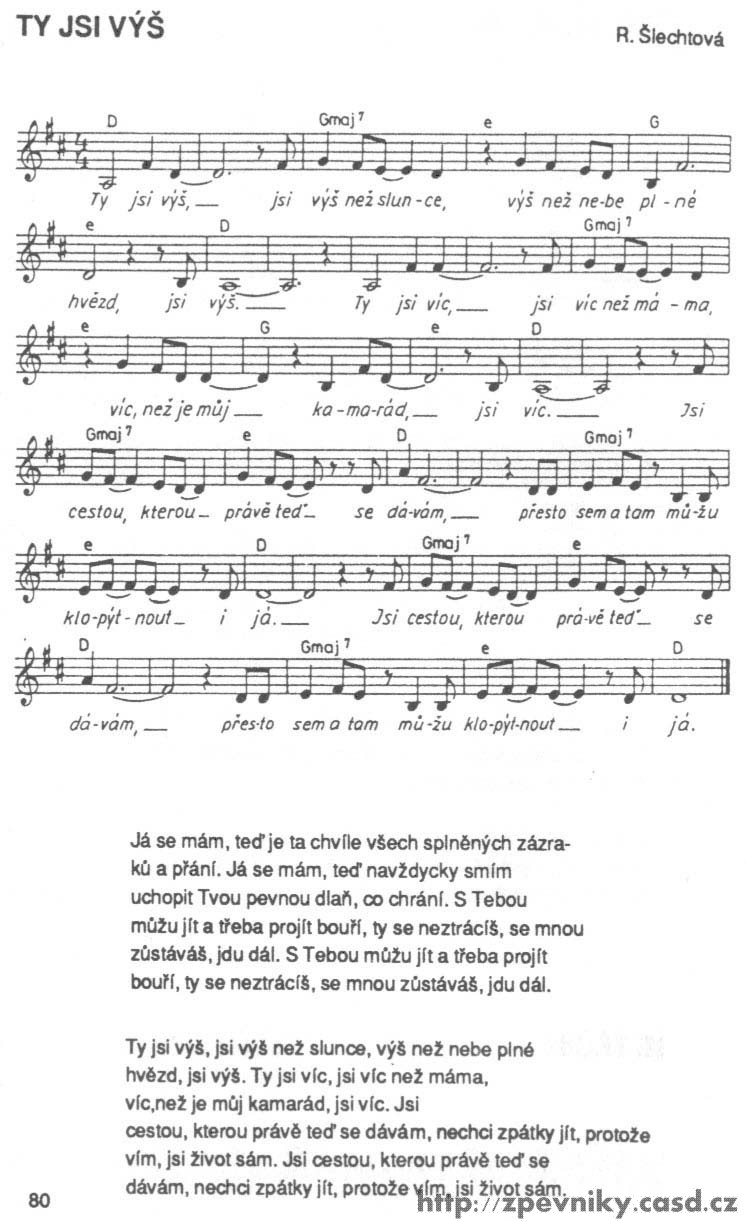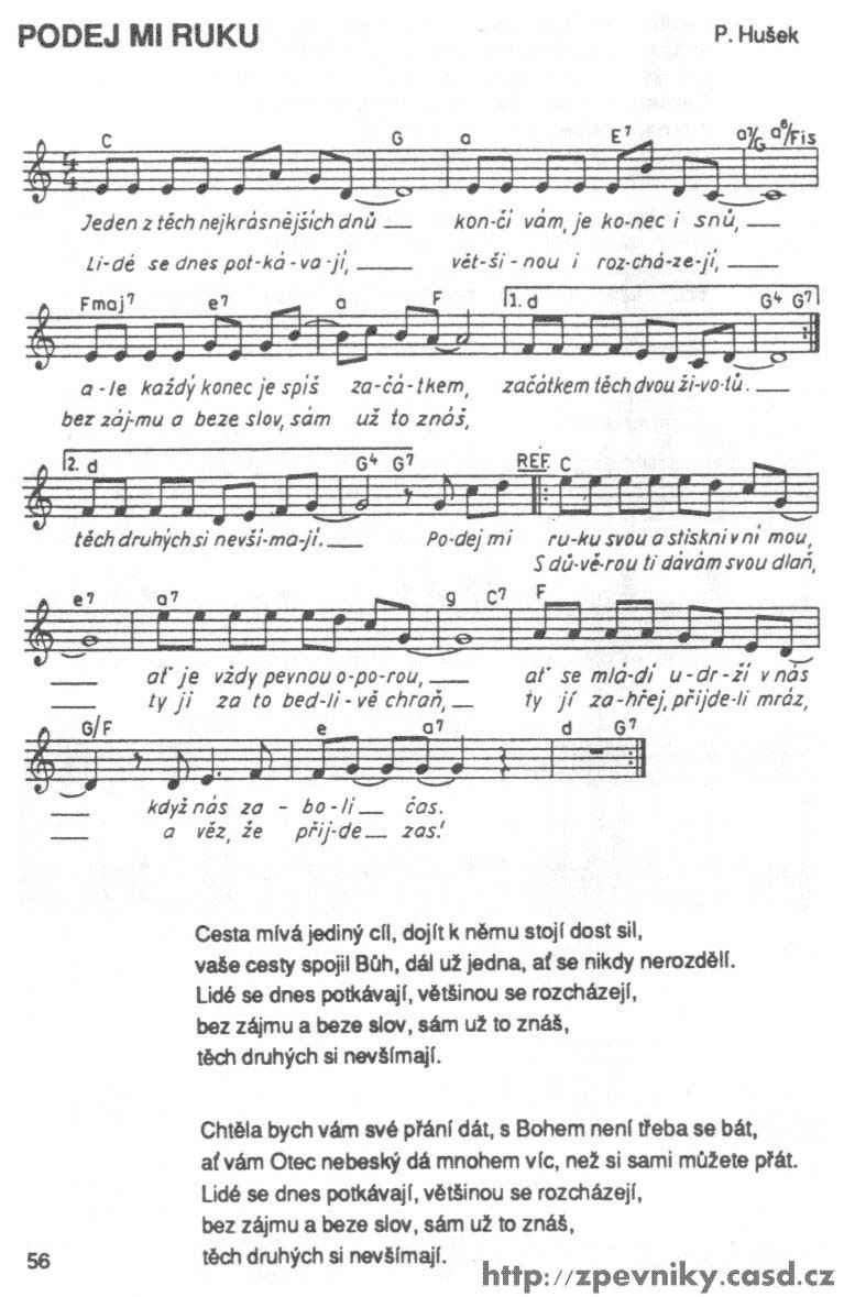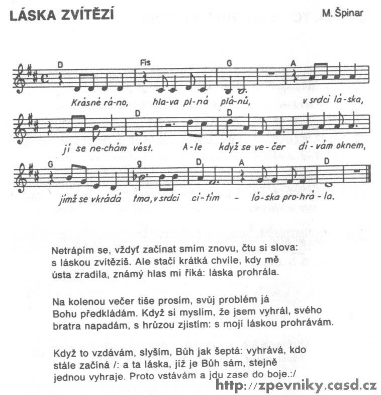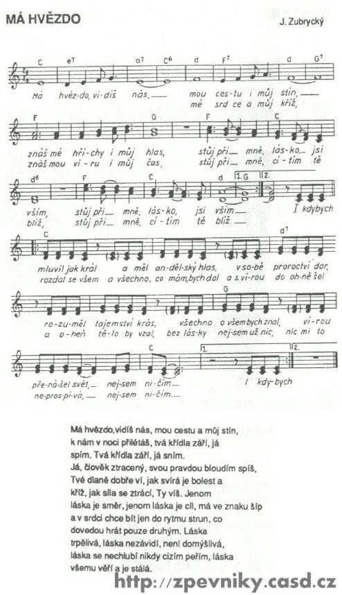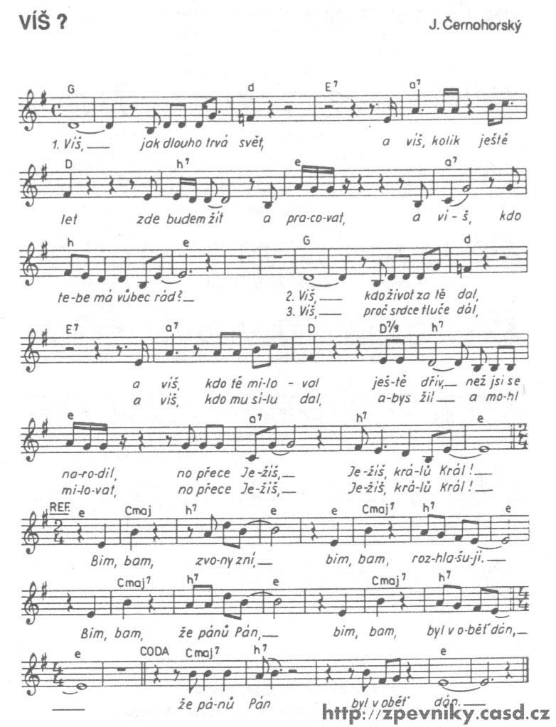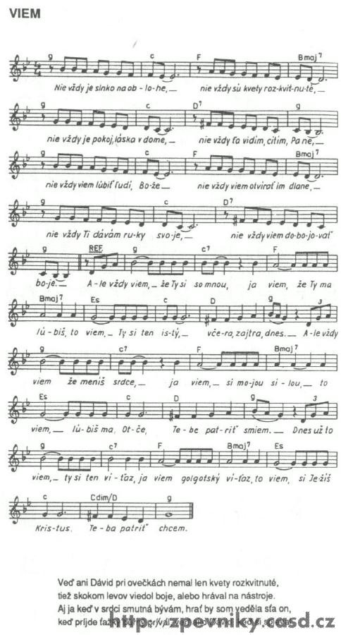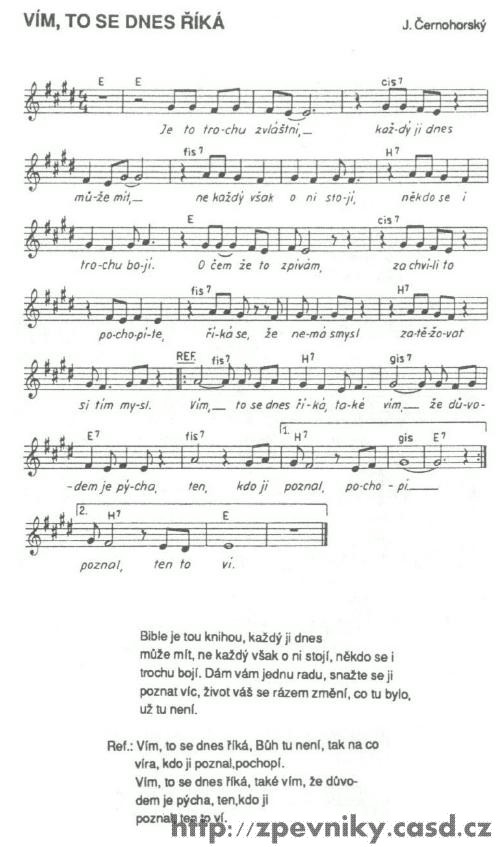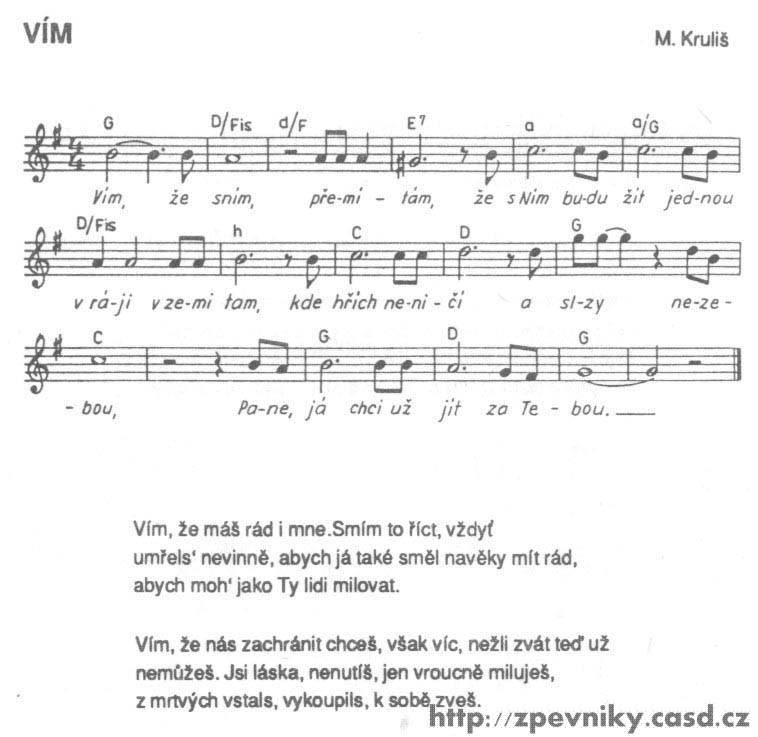 1. Dobrý den: Už asi půl roku sháním zpěvník kde je písnička s názvem VÍM. Našla jsem jí ve zpěvníku Život náš 2 , moc mě to potěšilo ale nevím kde bych tento zpěvník mohla koupit ale nejvíc by mně potěšilo kdybych sehnala k tomu zpěvníku CD kde je písnička s názvem VÍM. Byla bych moc ráda kdyby jste mně mohli poradit kde nebo na koho se mám obrátit. V tomto zpěvníku je více písniček které mně chytli za srdíčko. Jinak Vám moc děkují aspoň za radu. Bednářová