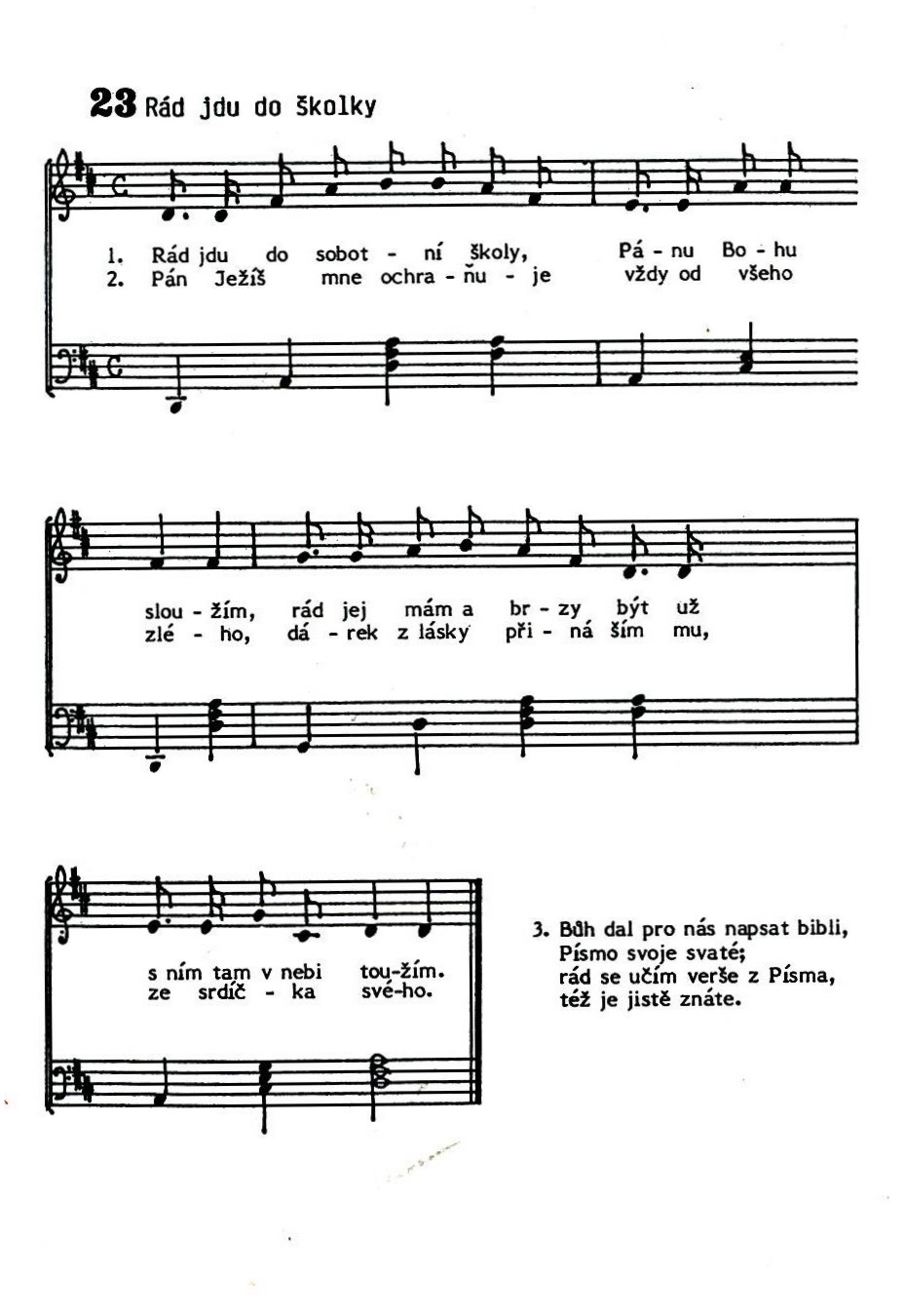 Drahokamy Bible ve formátu: 01 Kdo stvořil zářivé hvězdičky 02 Bůh mi říká 03 Ježíš stvořil celý svět 04 Má Pán Ježíš má mne rád 05 Den sobotní 06 Děkujeme za jídlo 07 Jak velkou radost cítím 08 Ztracená ovečka 09 Povídej mi 10 Dík za jeho lásku 11 Rodina 12 Slovo Boží 1 12 Slovo Boží 2 13 Já se nebojím 14 Andělé jsou s námi 15 Rád mluvím s Otcem svým 16 Pojďte s námi zpívat 17 Vstávejte 18 Ráno 19 Učíme se o Ježíši 20 Šťastný život dětí 21 Pán Bůh se každému 22 Ve shromáždění 23 Rád jdu do školky 24 Vděčnost 25 Mamince a taťkovi z lásky 26 Co chci 27 Děkuji 28 David kráčí krajinou 29 Má mne tolik rád 30 Chci být jako Ježíš 31 Ježíš také malý byl 32 Bůh nás chrání 33 Na nové zemi 34 Co mám v nebi 35 Chci hodný být 1 35 Chci hodný být 2 36 Sláva Bohu 37 Jdi všemu lidu hlásej 38 Chce nás k sobě vzít 39 Poslouchám 40 Vítej nám 41 Do sobotní školy jdem 1 41 Do sobotní školy jdem 2 42 Co dětí milují 43 Pojďte děti 44 Pán Ježíš nám říká 45 Chceš být s Ježíšem 46 Štěstí dávat 47 Před modlitbou [Ukázat prezentaci] ◄123► Vydala Církev adventistů s.d., Praha 4, Zálesí 50 Výhradně pro vnitřní potřebu